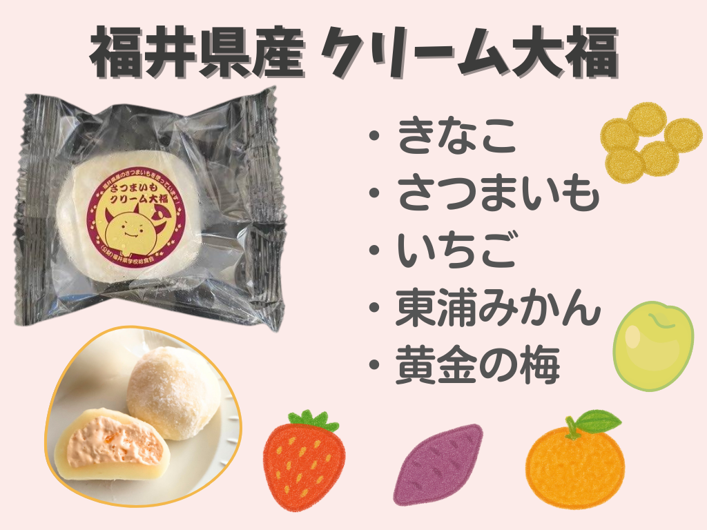 | クリーム大福 | きなこ、さつまいも、いちご、黄金の梅、東浦みかん | |