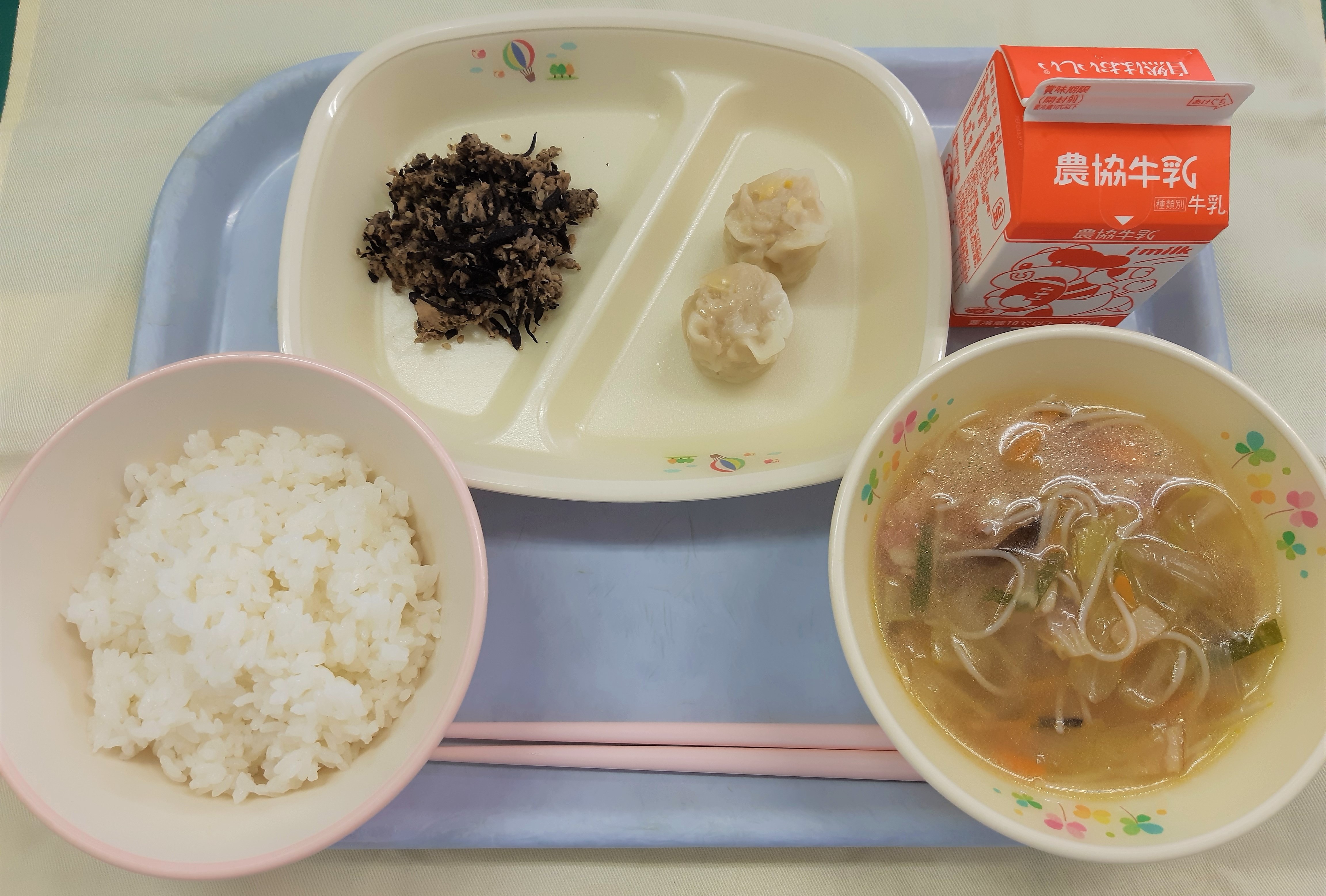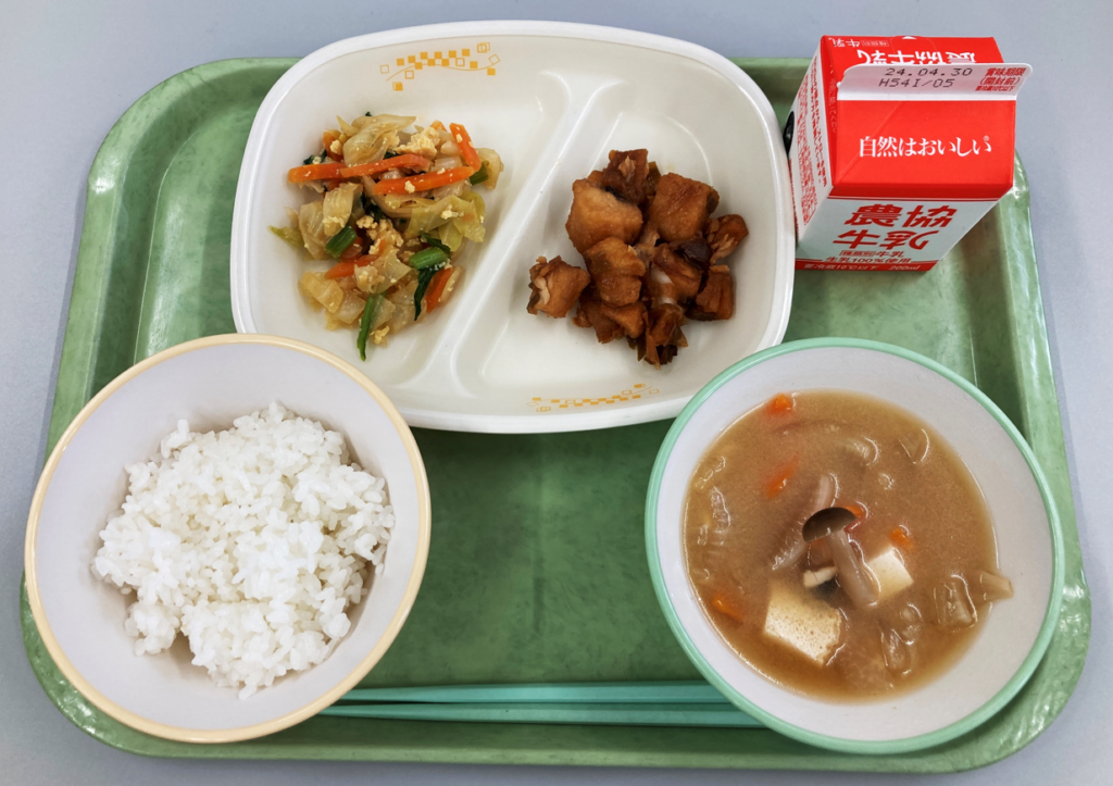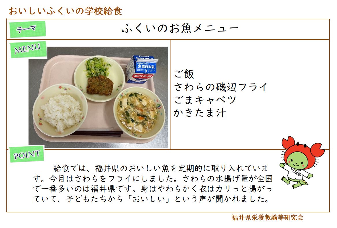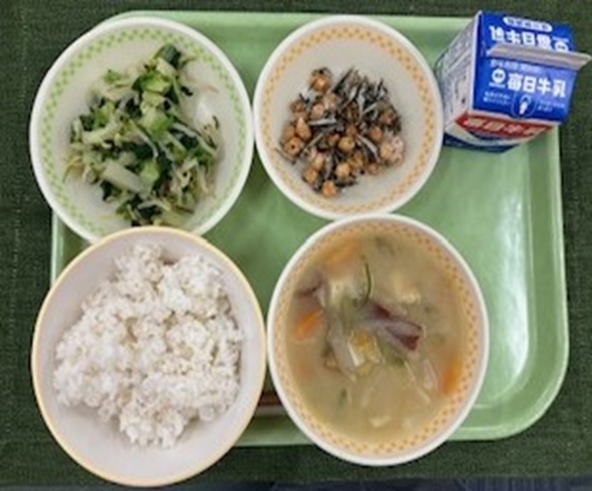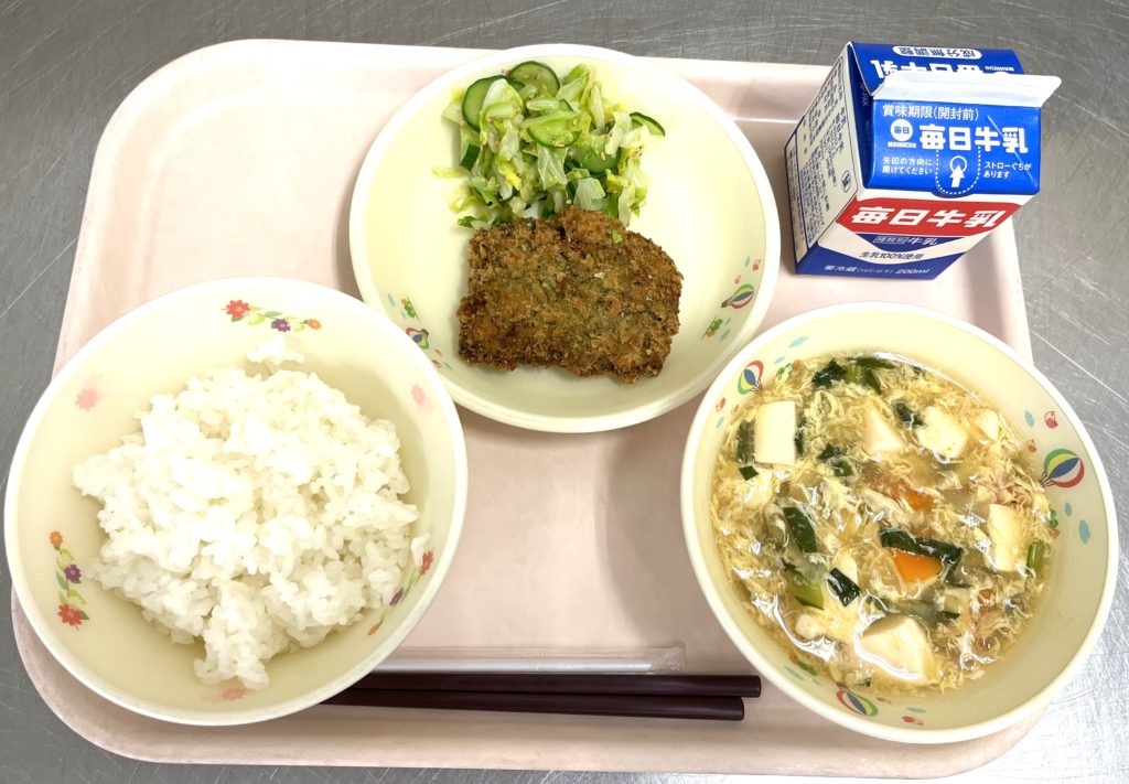 ご飯、さわらの磯辺フライ、ごまキャベツ、かきたま汁