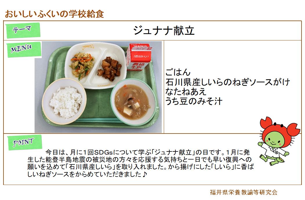 ごはん,石川県産しいらのねぎソースがけ,なたねあえ,うち豆のみそ汁