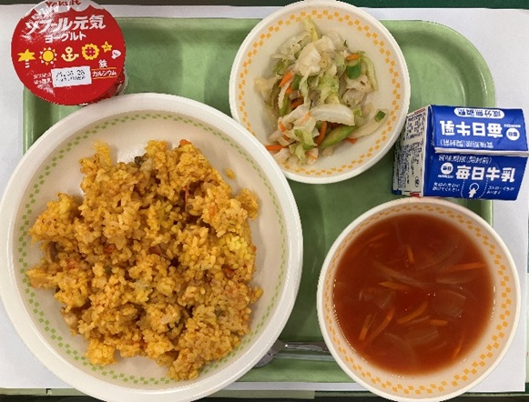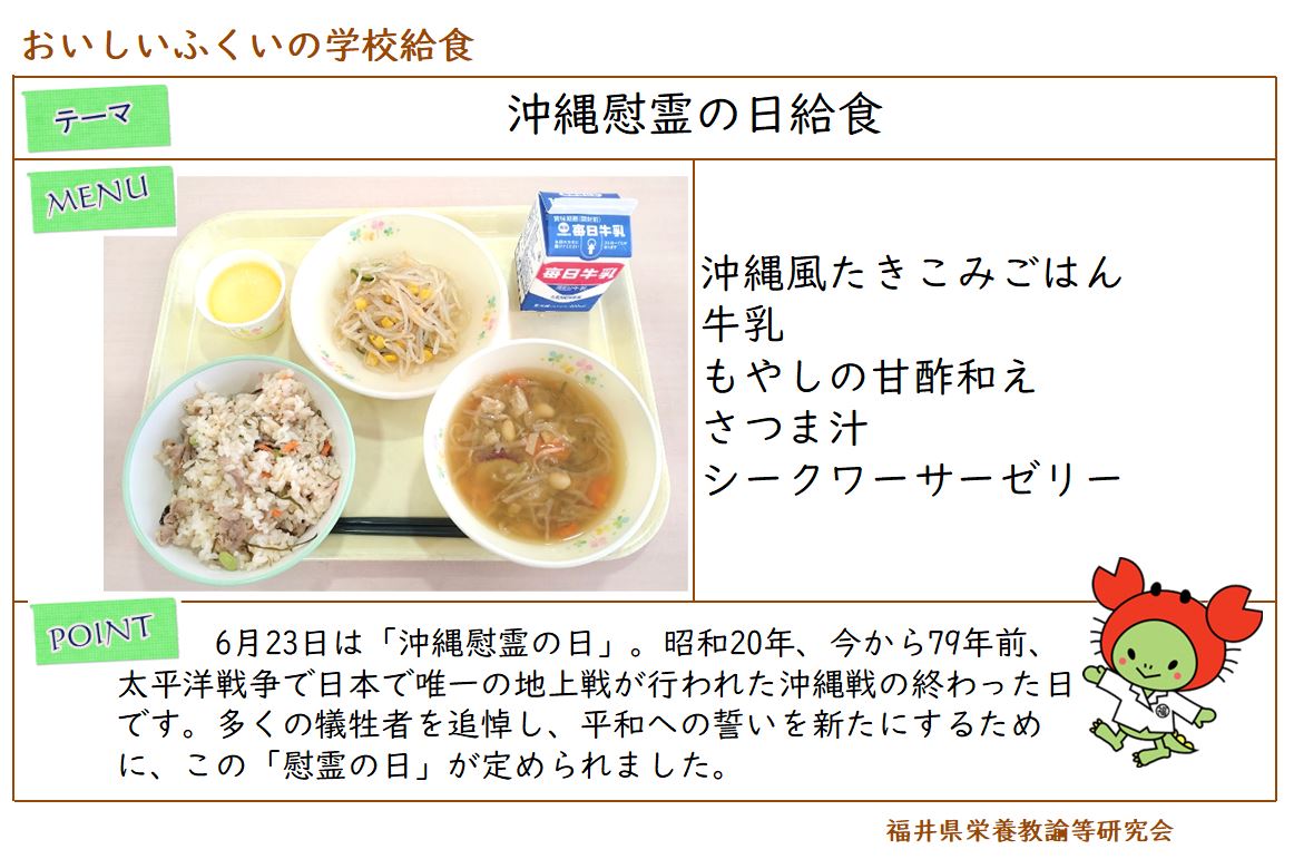 沖縄風たきこみごはん、もやしの甘酢和え、さつま汁、シークワーサーゼリー