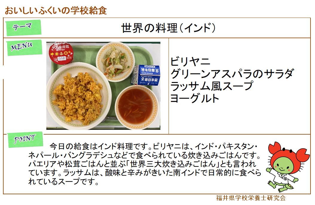 ビリヤニ、グリーンアスパラのサラダ、ラッサム風スープ、ヨーグルト