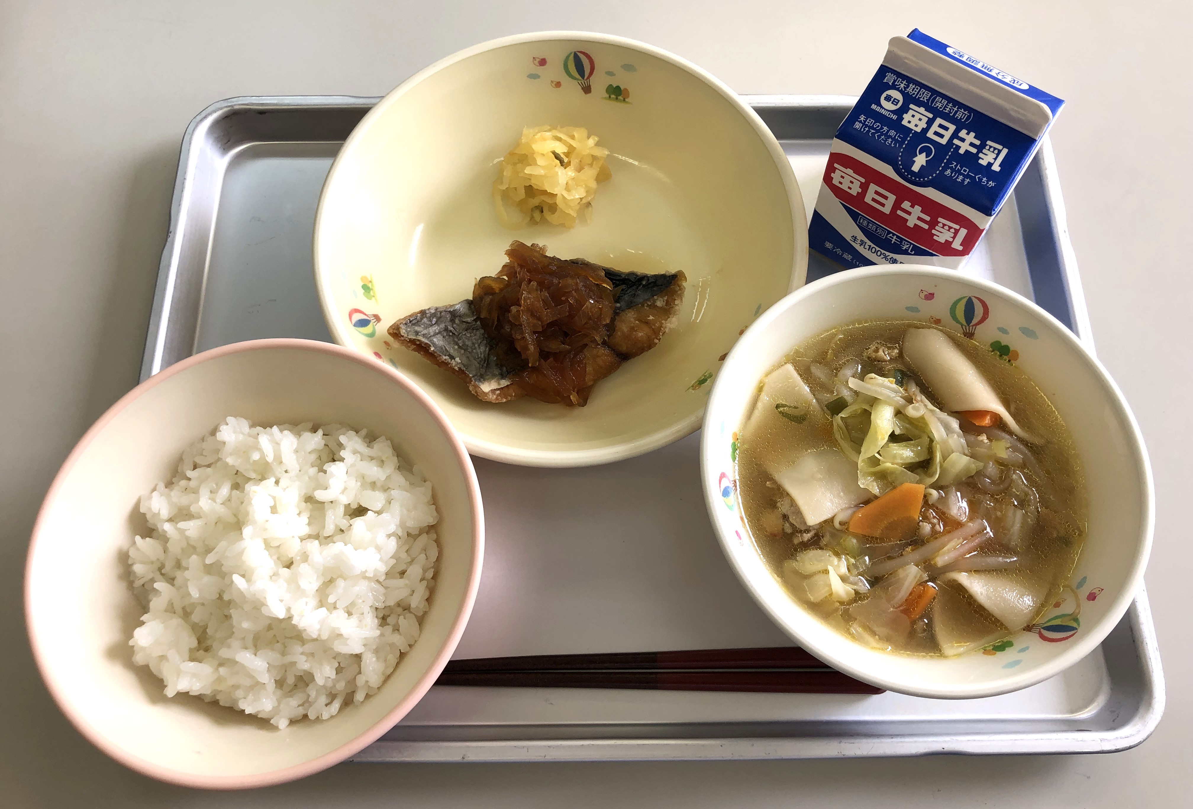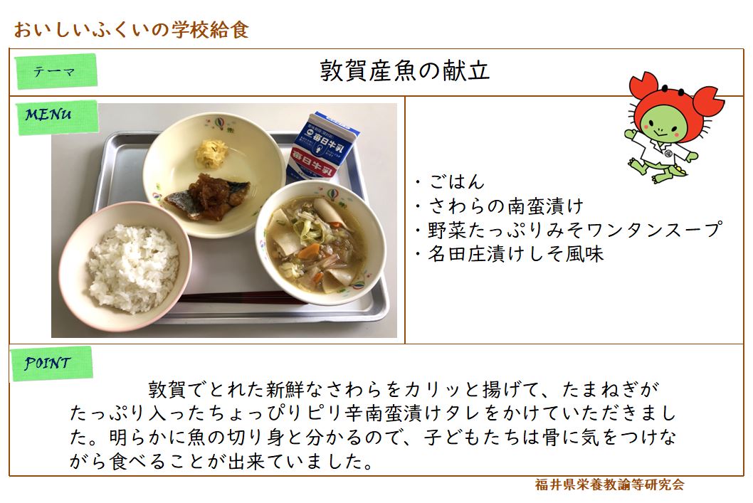 ごはん,さわらの南蛮漬け,野菜たっぷりみそワンタンスープ,名田庄漬けしそ風味