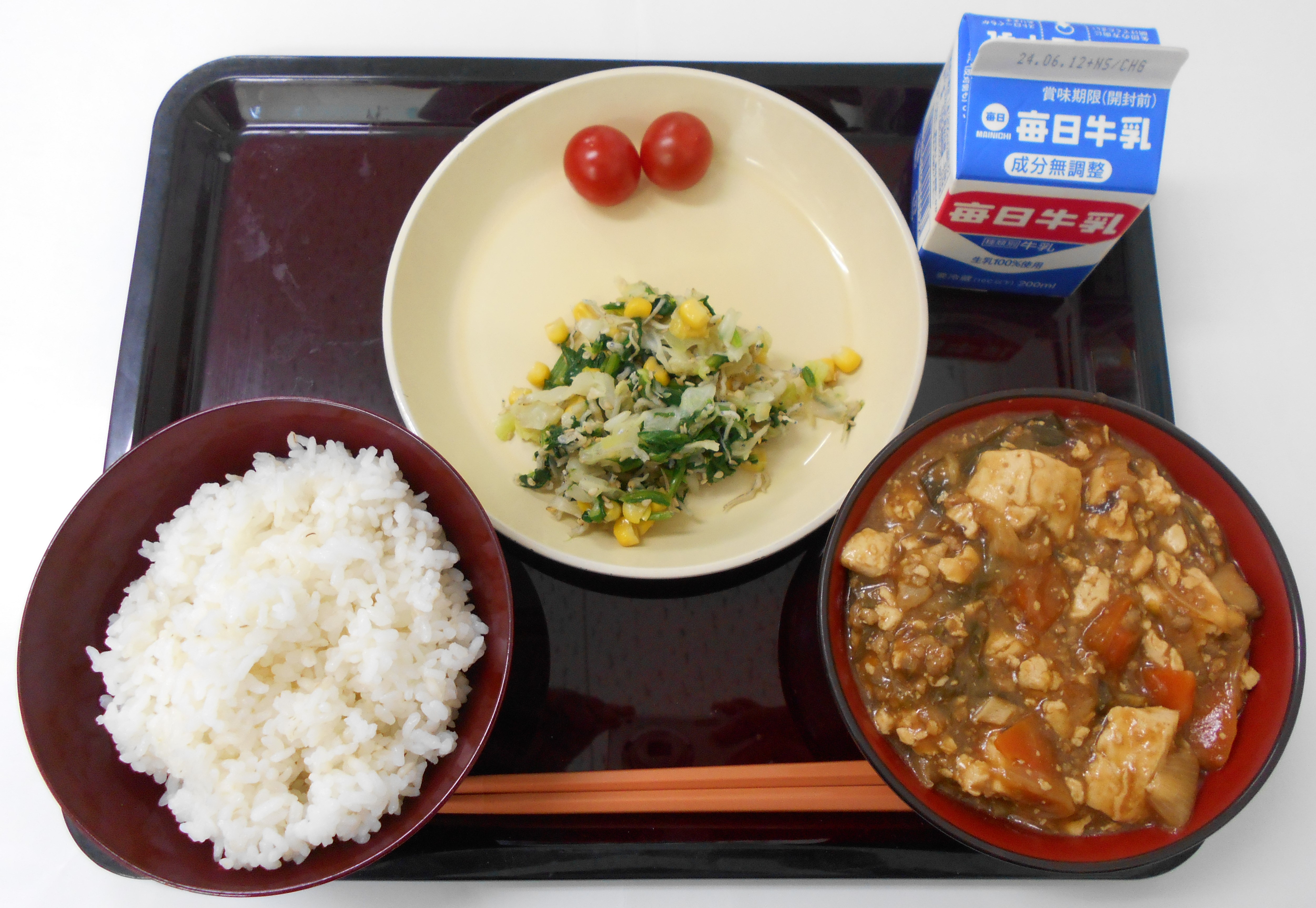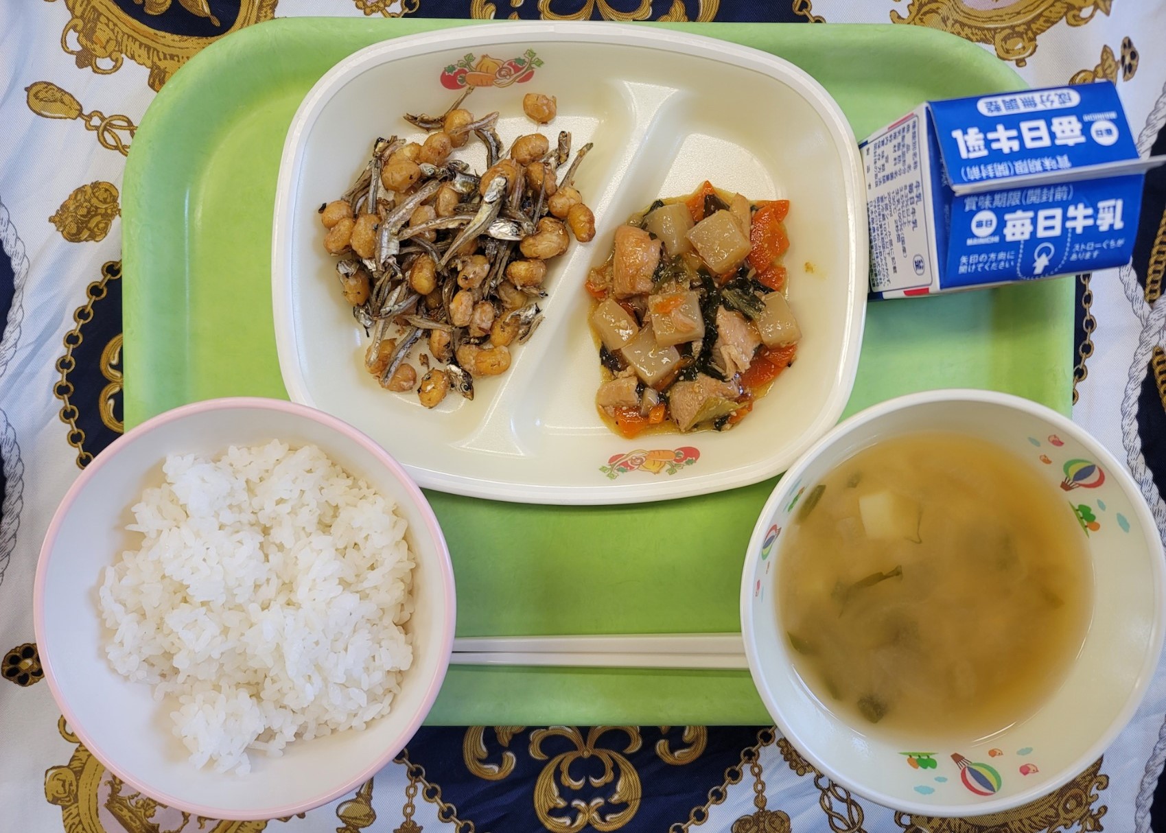 ごはん,鶏肉の梅ジャム焼き,キャベツの塩昆布和え,和風ミネストローネ,きな粉クリーム大福