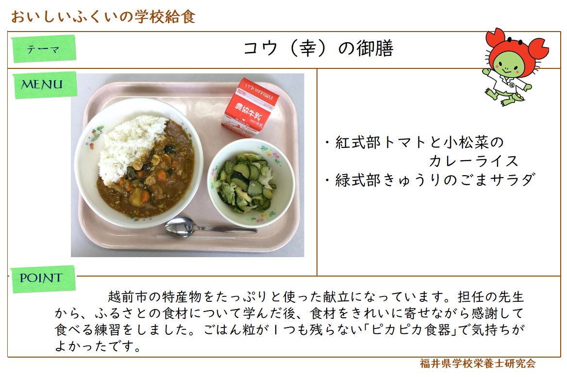 紅式部トマトと小松菜のカレーライス、緑式部きゅうりのごまサラダ