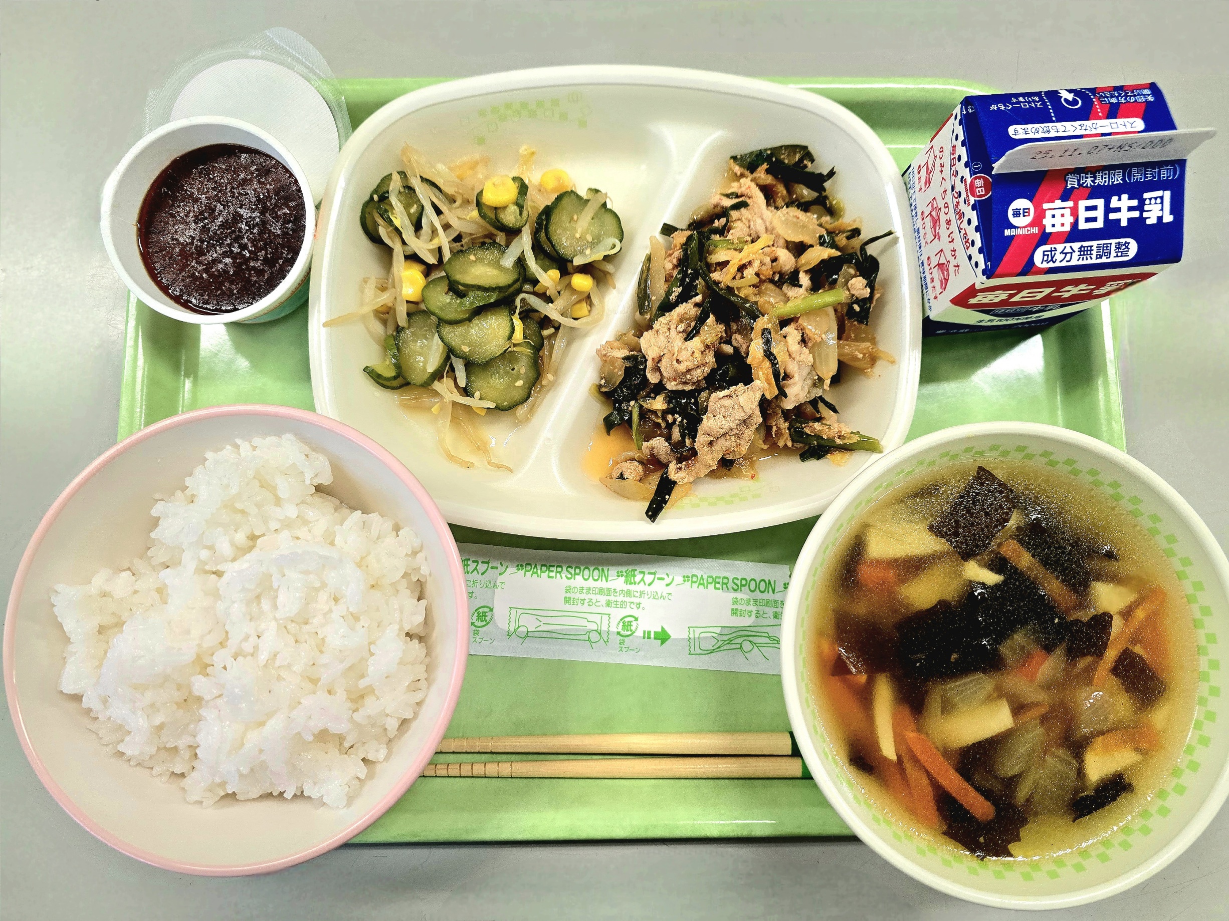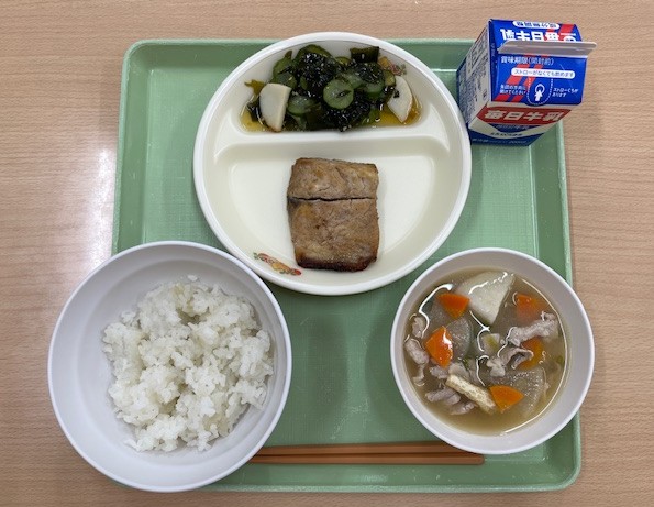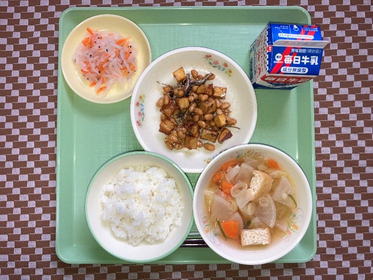 ごはん、大豆とさつまいものあまから、なます、根菜汁
