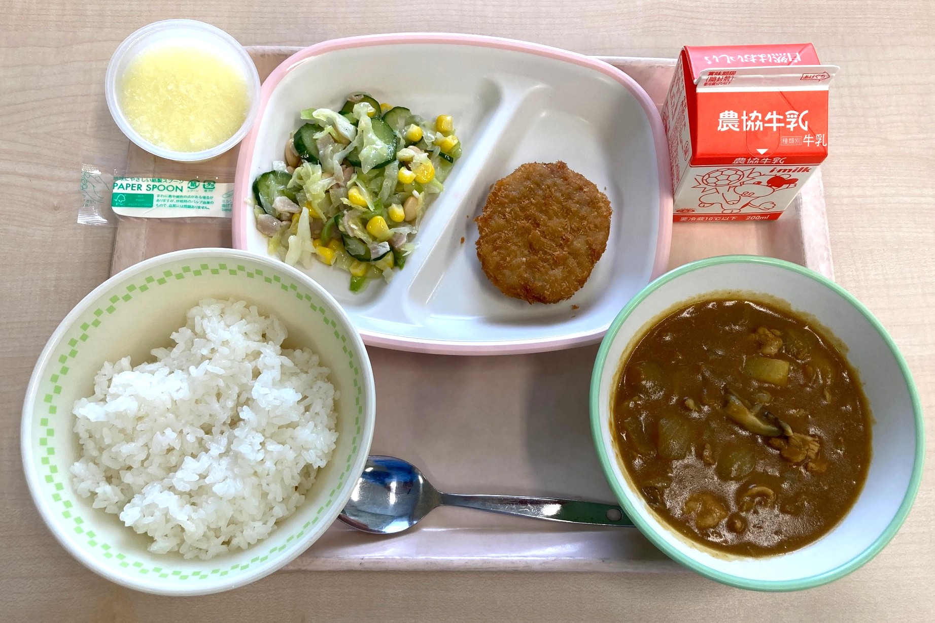 ごはん、ちくわのカレー揚げ、おあえ、ぼっかけ汁