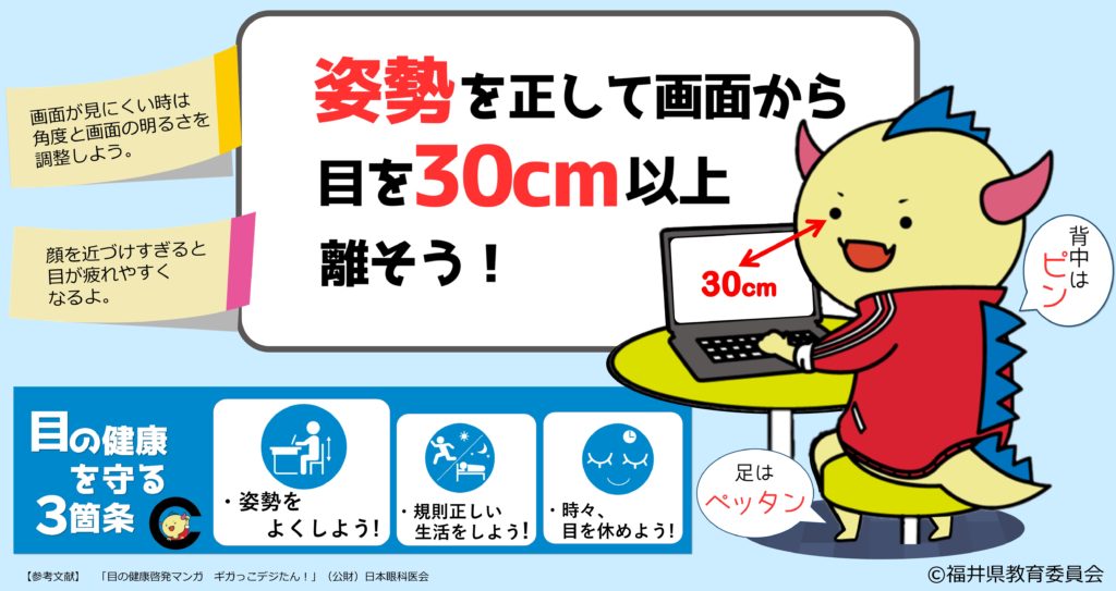 姿勢を正して画面から目を30㎝以上離そう