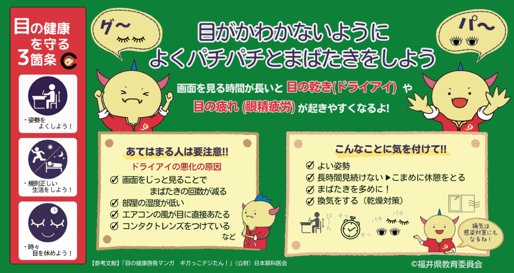 目がかわかないようによくパチパチとまばたきをしよう