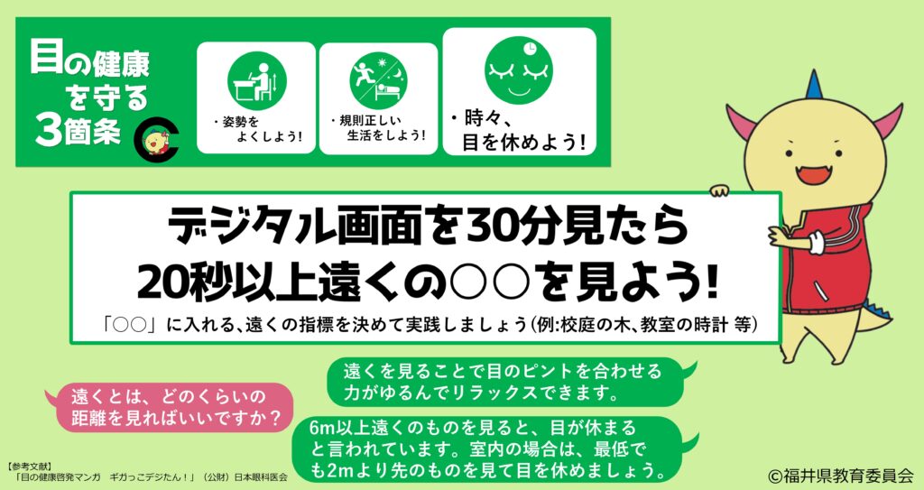 デジタル画面を30分見たら20秒以上遠くの○○を見よう!